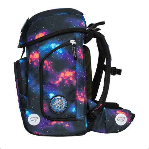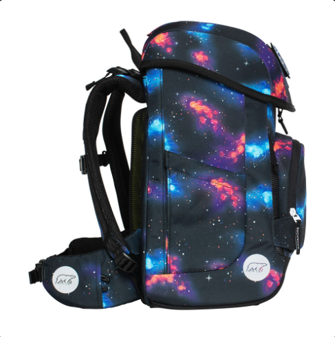 - držiaky na pripevnenie prídavného športového batohu – možno ľahko a ergonomicky pripevniť k školskému batohu, aby dieťa malo voľné ruky a váha zostala optimálne rozložená