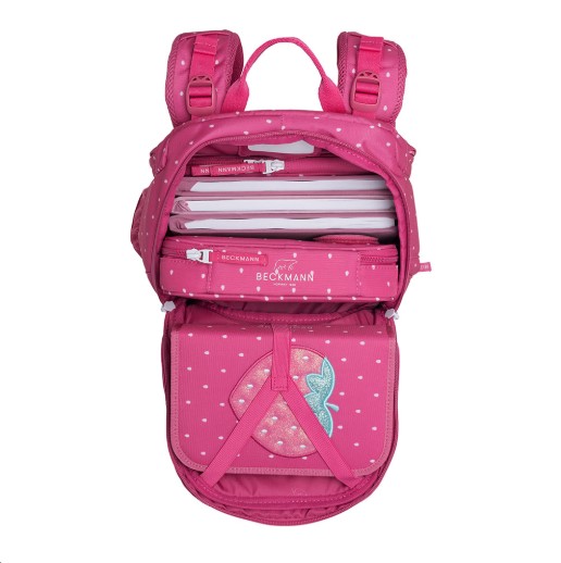 Školský batoh vhodný pre 1.-3. triedu ZŠ, ktorý spĺňa nielen dizajnové prvky, ale aj náročné ergonomické požadavky. Na vývoji a testovaní batohov Beckmann sa podieľali chiropraktici a fyzioterapeuti. Výsledkom je ľahký, optimálne upravený batoh s prepracovaným chrbtovým systémom, hliníkovou, ergonomicky tvarovanou lištou. Priestor školského batohu Beckmann je 20-25 litrov. Bočné vrecká batohu sú určené pre prezuvky, fľašu, pre učebnice sa využíva jednokomorový priestor s dvoma priehradkami na zložky, knižky, tablet alebo zošity a nepremokavé vrecko pre desiatový box.